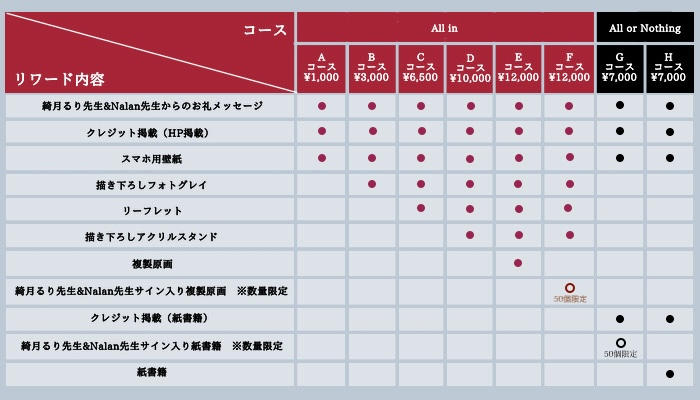 【All or Nothing形式】関しましては、目標達成時のみ書籍化が行われます。目標金額が達成できなかった場合は、プロジェクト内容の実施、グッズの生産などリワードの提供は行われません。