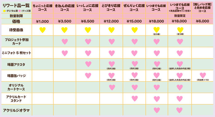 - 本プロジェクトの各コースでは、ご支援の際にご希望の作品を1つお選びいただきます。