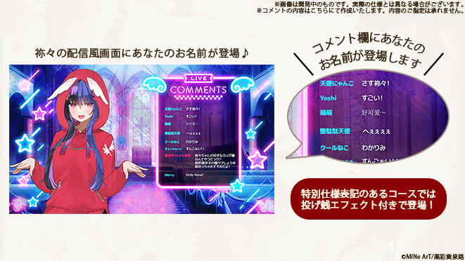 袮々にコメントを送る天使ちゃんの名前として、あなたのお名前を登場させます。