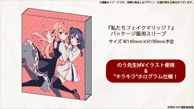 - 発売を予定している『私たちフェイクマリッジ?』のPCソフトパッケージ版のカバーチェンジが出来るキラキラ仕様の三方背スリーブです。