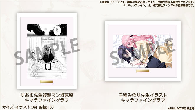 世界で一枚だけの、キャラ選択可能な描き下ろしイラストに千種みのり先生直筆サインが入ります。
