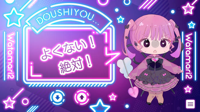 - ※ゲームでは実際のVチューバーと同じくLive2dアバターの八雲袮々が動きます。