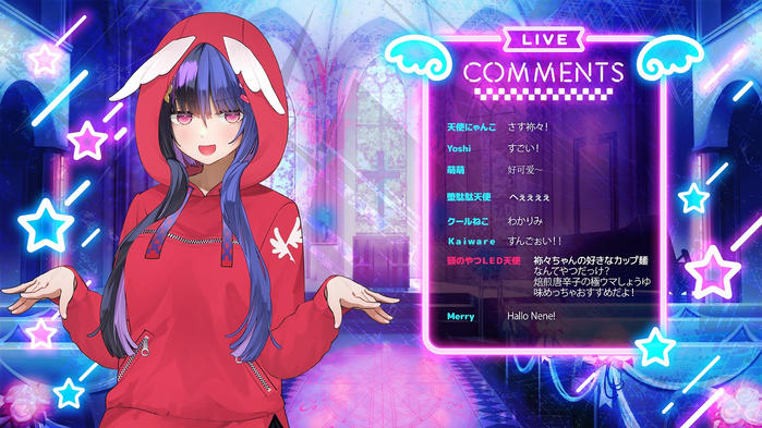 Vチューバーの配信画面にも似た、八雲袮々(やくもねね)と天使ちゃん(あなた)達の脳内会議のシーンが特徴の1つ!