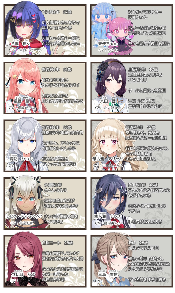 八雲袮々 / レビス・テオセベイア / 柳ヶ瀬ナンナ の中からひとりお選びください。
